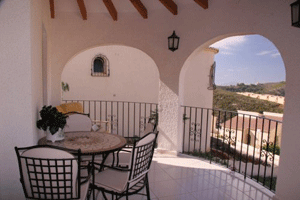 This impressive detached villa enjoys luscious mountain views overlooking the magnificent fishing village of Moraira in the ever-popular Cumbre del Sol. The deceptive accommodation comprises entrance hall leading to two bedrooms on either side of the villa, shower room and a few steps up you come to the master bedroom with en-suite facility. The combined lounge/dining room with feature fireplace and open plan American kitchen opens up to the large covered terrace, which overlooks the easy to maintain garden. This magnificent urbanisation gives residents access to adult and children's pools as well as other facilities. This would be an excellent opportunity to acquire a permanent or holiday home in a very attractive area. |